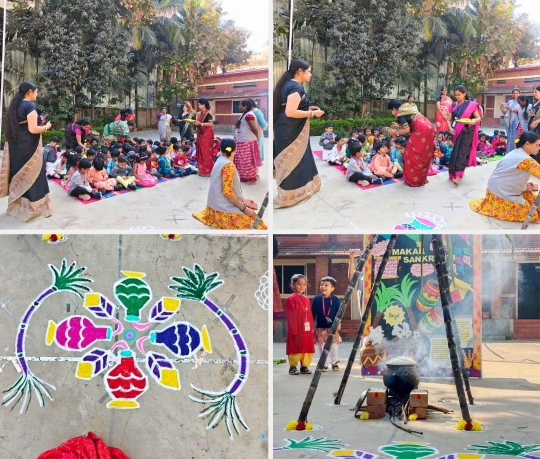 The celebration began with our Center Head, Bibhu Ma’am, sharing the significance of the festival, followed by the traditional boiling of milk and blessings from teachers. Energetic dance performances and festive music filled the day with smiles, laughter, and learning about gratitude, sharing, and togetherness 🌞✨🪁