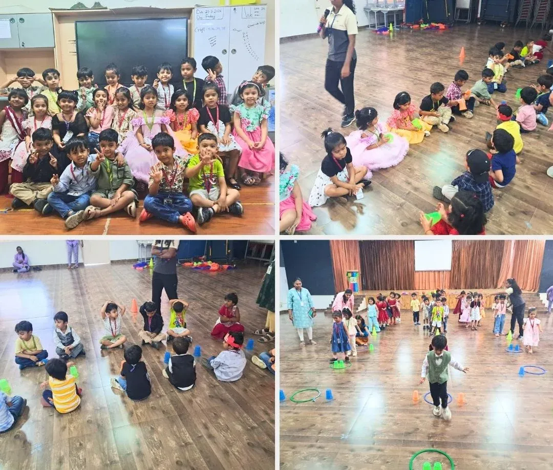 The Nursery year-end party on 27th March was filled with fun, laughter, and togetherness. Children enjoyed tasty snacks, shared food with friends, and enthusiastically participated in games. The celebration ended with joyful dancing, making it a memorable and happy close to their academic year.