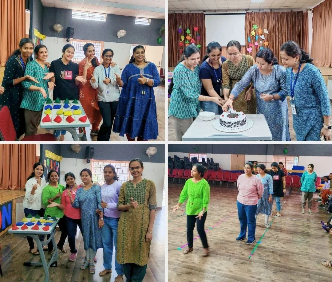 The celebration continued with birthday cheers for our November-born teachers and a joyful cake-cutting moment. 🎉