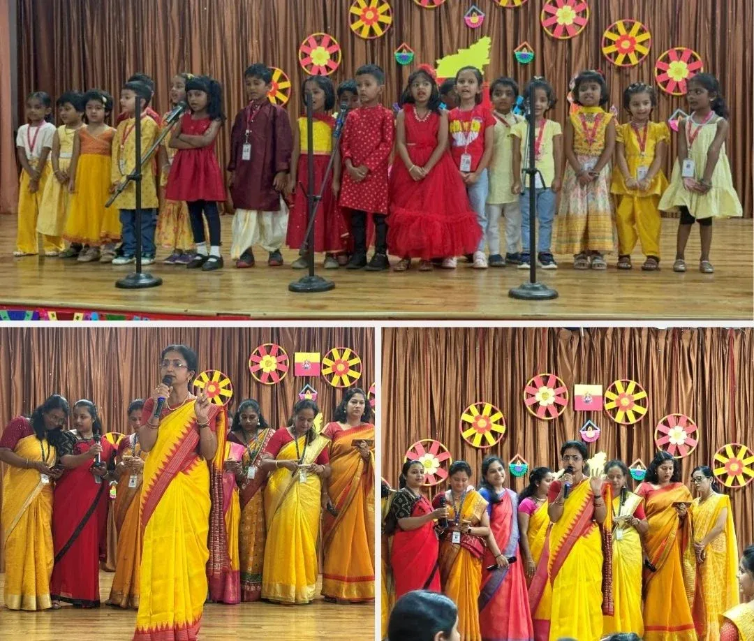 Nursery children dressed up as Karnataka’s famous personalities, paying tribute to great leaders and icons. The KG1 and KG2 Music Club added melody with soulful Kannada songs, while the Dance Club brought energy and colour with graceful performances.