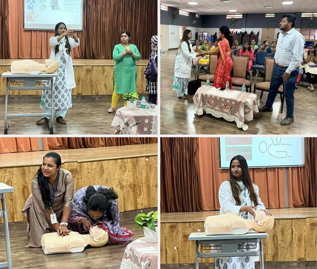Our teachers attended a Basic Life Support (BLS) training session conducted by Dr. Anusha Prasad, Emergency Medicine Physician, Manipal Hospitals, equipping them with essential lifesaving skills.