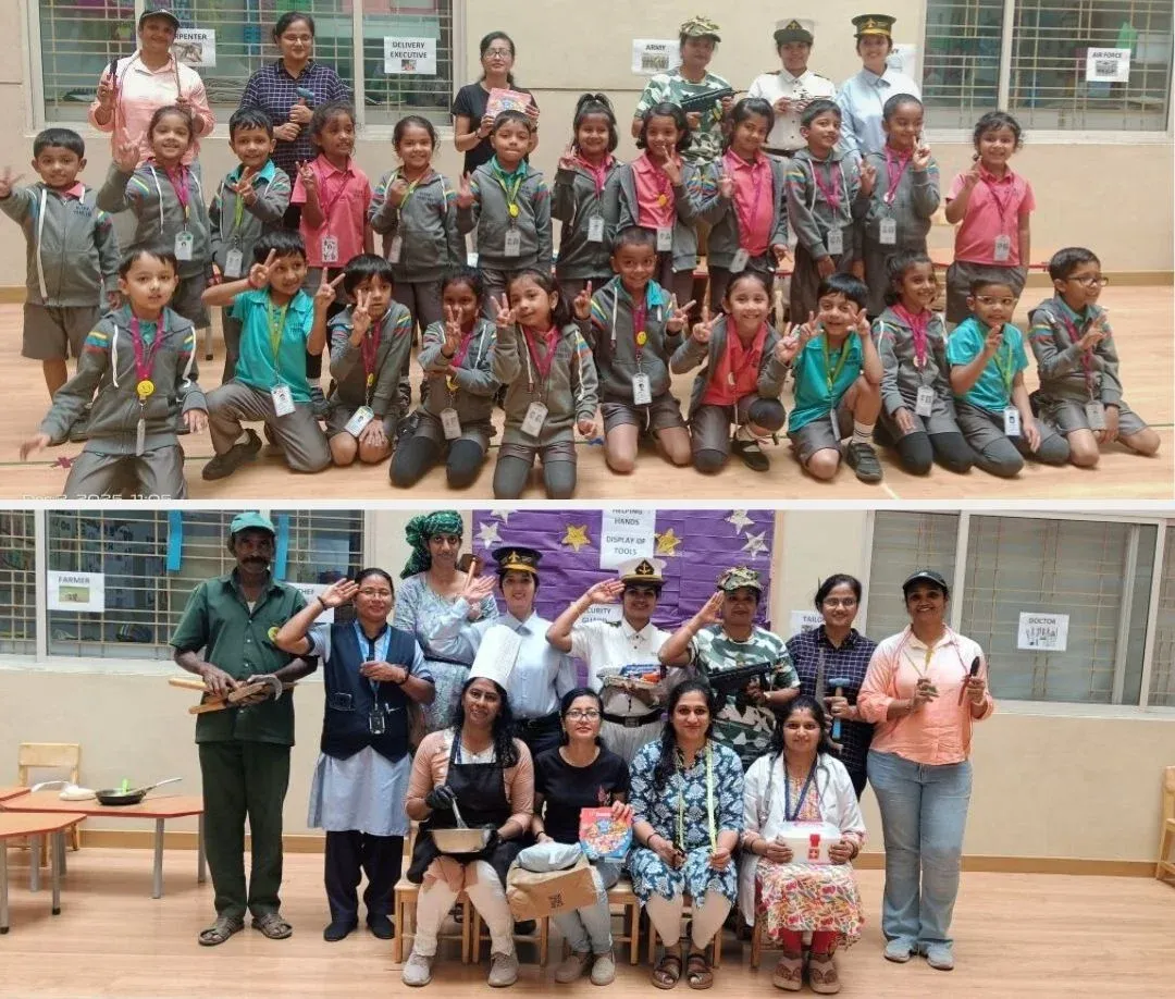 On 2/12/2025, our children explored the concept of Community Helpers through a fun role-play activity. Teachers dressed up as various professionals—Doctor, Chef, Soldier, Pilot, Electrician, Farmer, Tailor, and more—acting out their real-life duties.