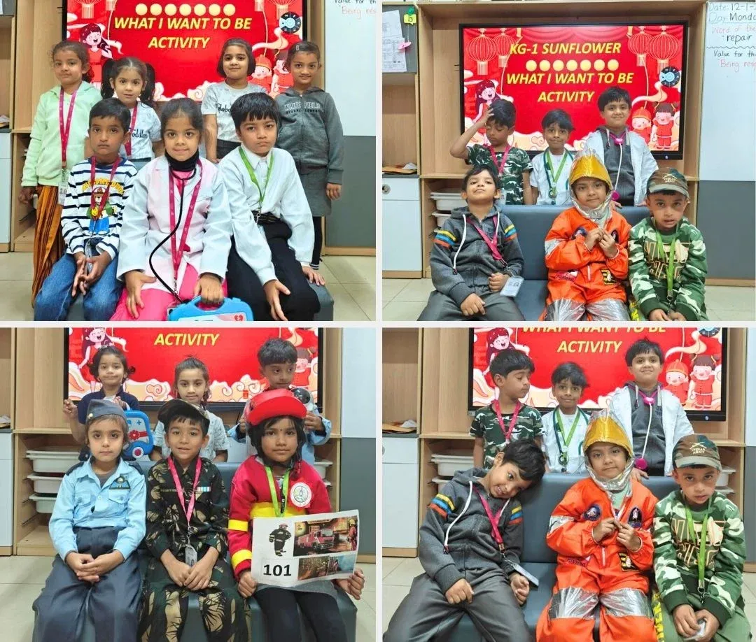 On Monday, 12th January, our KG1 children joyfully participated in the activity “What I Want to Be.”